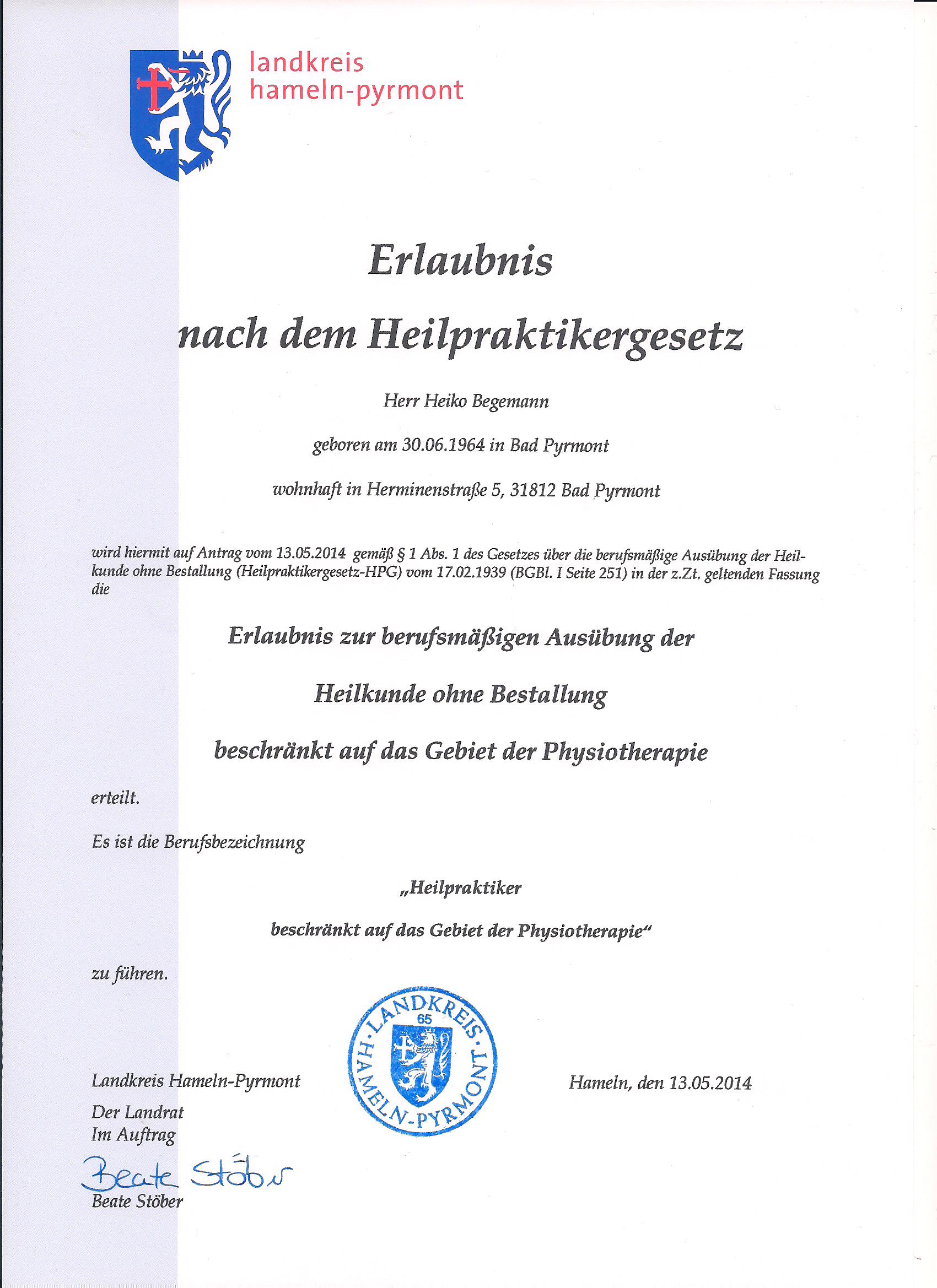 Ab 2014 Erlaubnis zur Führung der Berufsbezeichnung